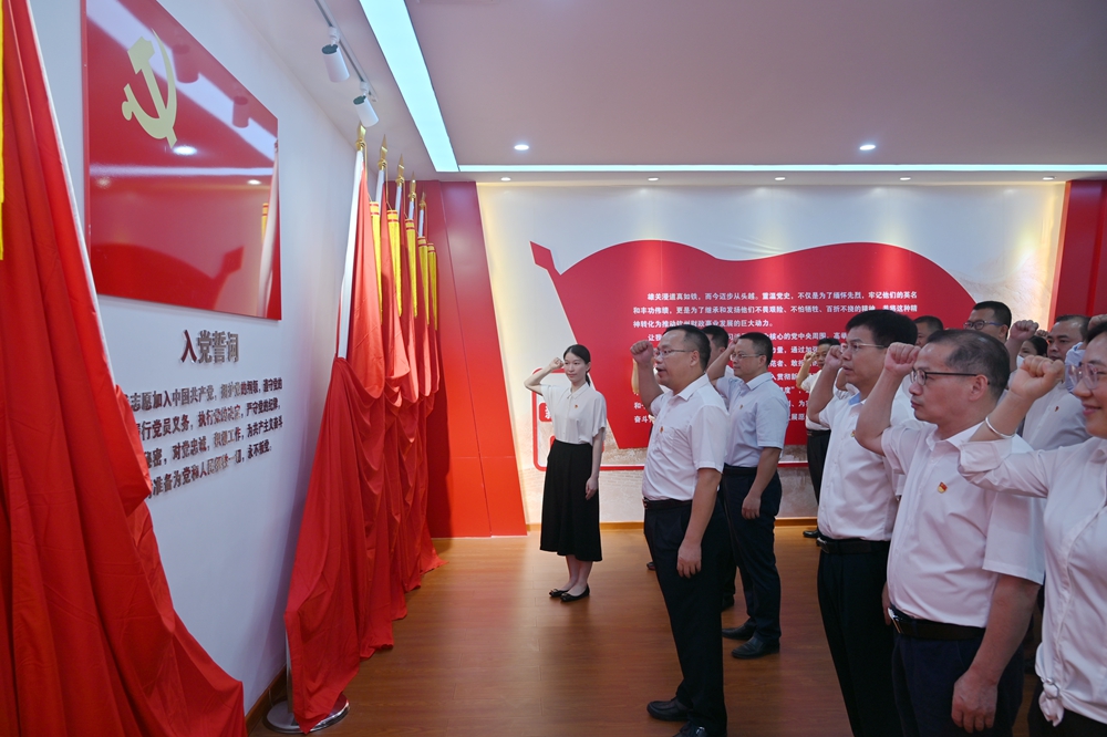“我志愿加入中国共产党!”铿锵有力的入党誓词在钦州市财政局党建文化展厅内回响,在鲜艳的党旗下,李远钦带领局全体党员重温入党誓词,重温入党时对党和人民作出的庄严承诺。随后,全体党员高歌《没有共产党就没有新中国》,以嘹亮的歌声致敬伟大的中国共产党。