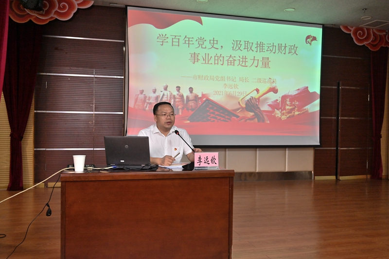 回望过往的奋斗路,眺望前方的奋进路,李远钦同志在“学百年党史,汲取推动财政事业的奋进力量”的专题党课上,带领全体党员干部回顾了党的光辉历程和取得的伟大成就,引导全体党员干部在党史学习教育中深刻认识到“中国共产党为什么能,马克思主义为什么行,中国特色社会主义为什么好”。会上李远钦结合自身经历和工作案例,分析当前财政主要工作任务和难点问题。