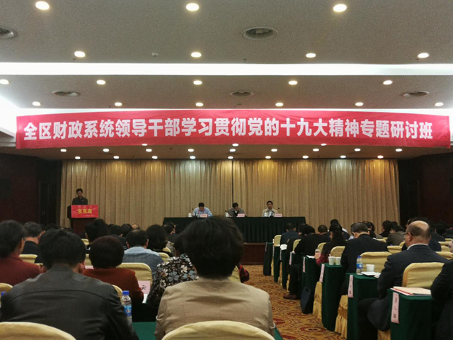 1月18-19日,自治区财政厅在南宁举办全区财政系统领导干部学习贯彻党的十九大精神专题研讨班。厅党组书记、厅长关礼出席开班仪式并作专题报告。我局领导班子全体成员参加了此次培训。